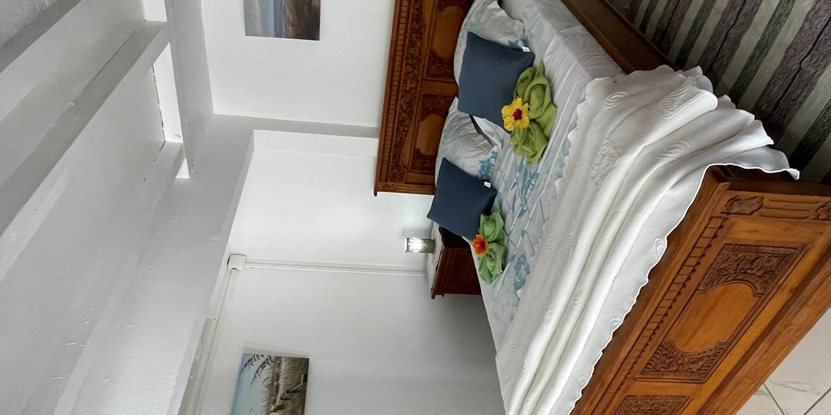 Chambre double climatisée, confortable et lumineuse, parfaite pour un couple ou deux personnes voyageant ensemble. Elle est équipée d'un grand lit double, d'une salle de bain privative avec douche, d'un placard pour le rangement, et d'une décoration simple et agréable. Vous profiterez d'un environnement calme et reposant, à proximité des commodités locales. Le linge de lit, les serviettes et la connexion Wi-Fi sont inclus. Un petit déjeuner copieux, composé de produits locaux et issus du jardin, est servi chaque matin pour bien commencer la journée.